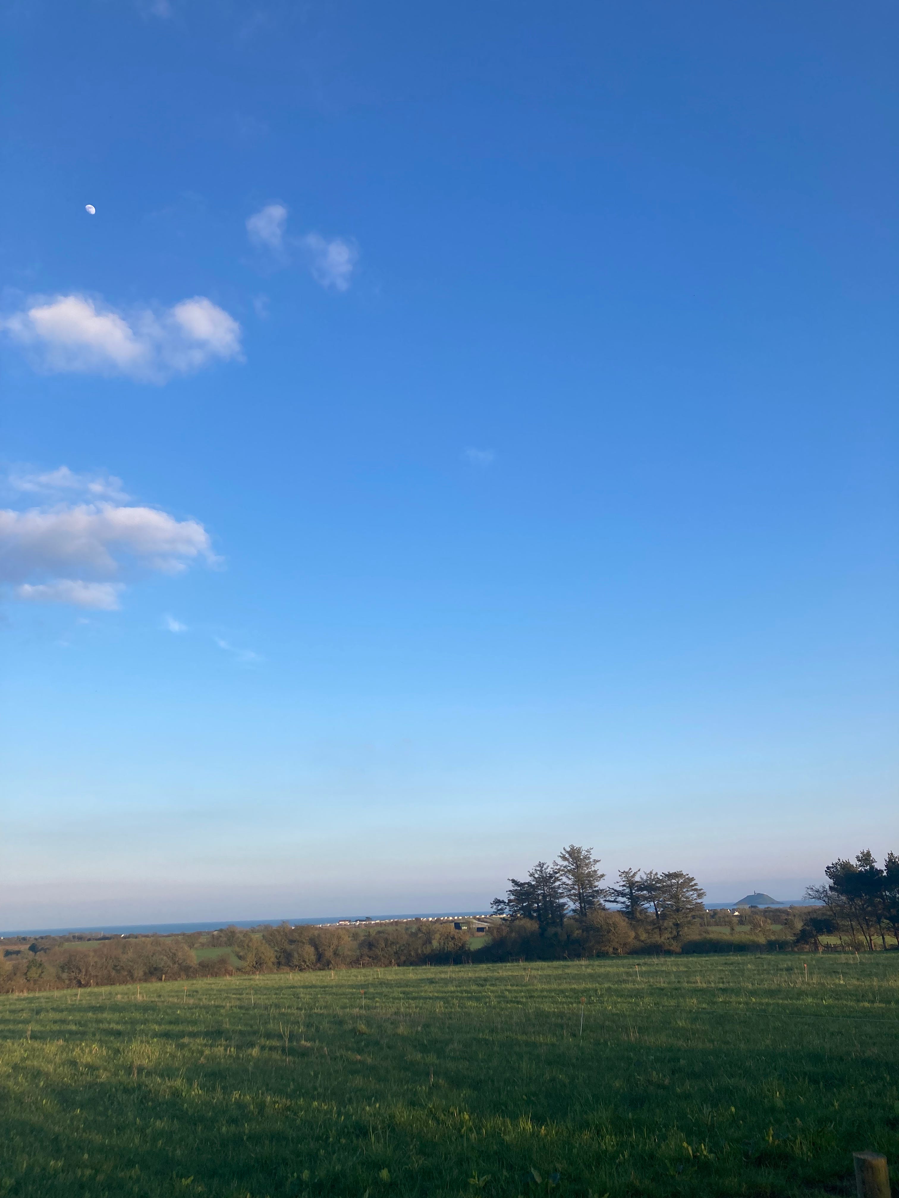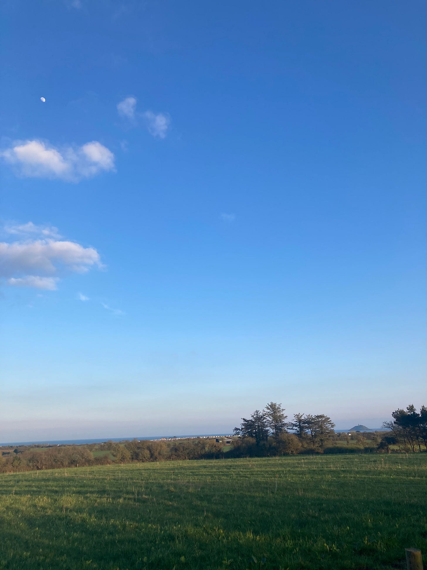 I did manage to go for a walk after school in the glorious golden light of the early spring evening, and found myself tearing up at how beautiful everything around me looked. The brilliant green grass fields, the low light filtering through the trees, the yellow flowers of the rapeseed plant bending in the wind, the moss on the stone garden walls, the darkening blue sky, the fog creeping in on the horizon. As I walked, I thought about one of my teachers, Rory, and how good he was at cooking and teaching, and how he has been cooking for 40 years, and how it is his calling and I can’t imagine him doing anything else. And I thought about my own life, and what could it have been, and what could I have been, and what can I still be. I wondered if it was enough just to see the sky and hear the birds, to feel the sun on my face and run my hand along the mossy walls, to cook the food and arrange the flowers, to water the garden and pet the dog.